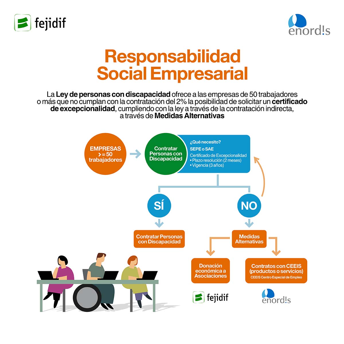 Aquellas empresas que no puedan crear el empleo que les corresponde, pueden hacerlo de forma indirecta, tal y como indica ese mismo artículo 42 de la citada Ley, a través de la autorización de excepcionalidad de medidas alternativas, cuya aplicación queda recogida en la regulación del cumplimiento alternativo con carácter excepcional de la cuota de reserva en favor de los trabajadores con discapacidad.
